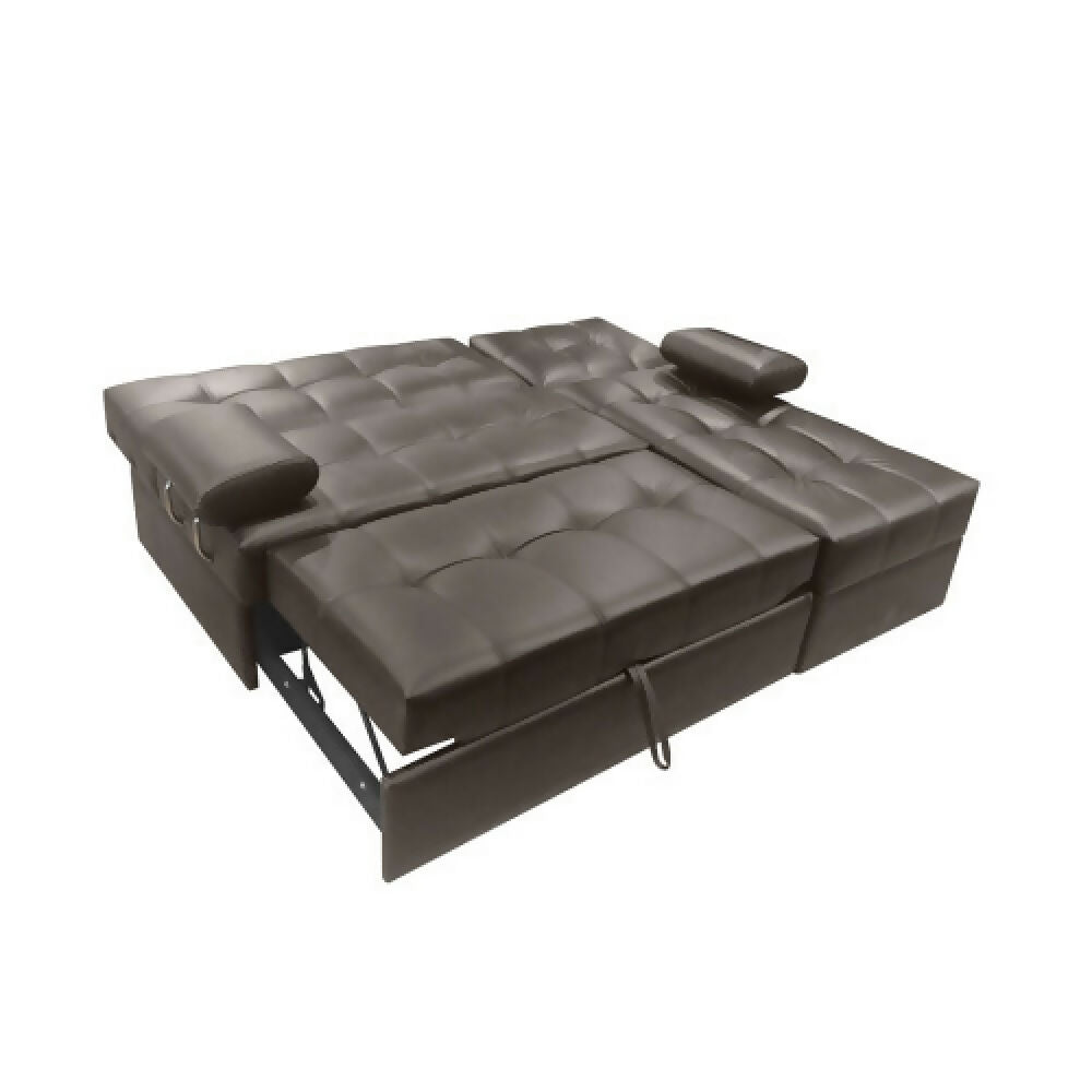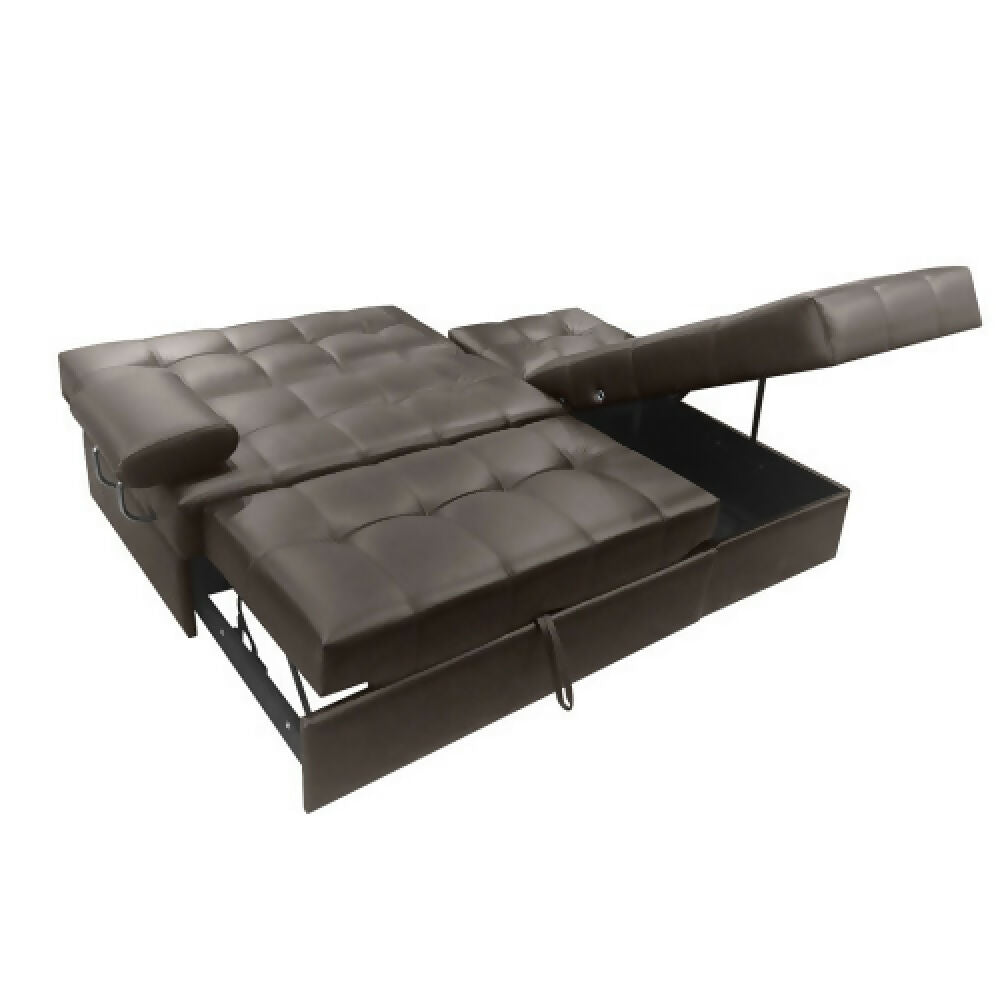 Sofá Cama Angela En L Con Brazos Cuero Sintético Café